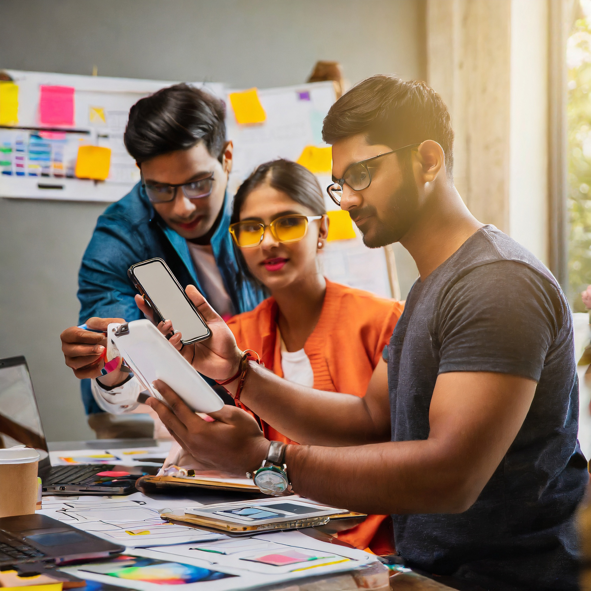Our design team creates wireframes and prototypes, mapping out the app's structure and functionality.